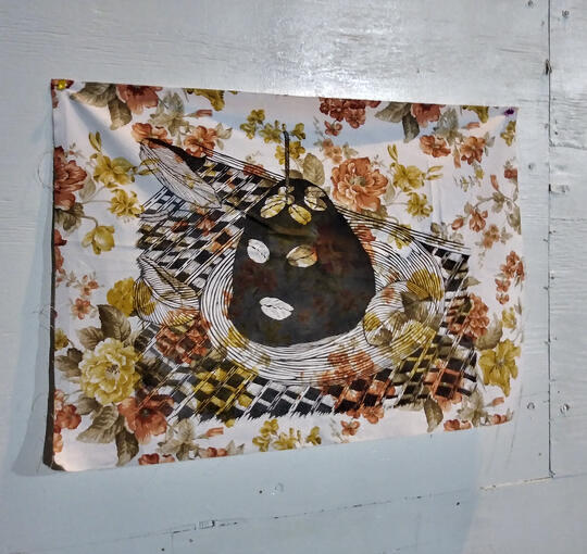 Repetition, ritual and disease- these elements have the ability to spread from person to person through physical and spiritual environments, some a choice and some more intrusive and involuntary much like the pandemic we see today.I chose to print these woodblocks onto hand-printed floral cloth. The abstracted images of the altar to Elegua and the child experiencing small pox become ornamental and commonplace when placed in an external area. This parallels the idea about how our past informs the present and future. Many are still focused on forgetting as a way of acceptance and moving forward.