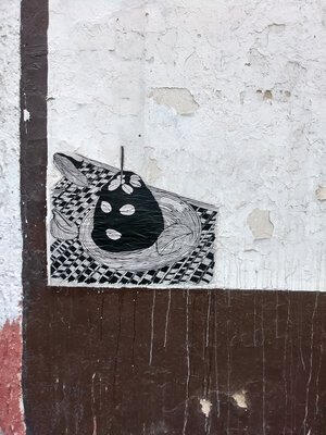 Dar y recibir (to give and receive) is a print installation that incorporates Voodoo, Santeria and Christian imagery to describe how colonialism has altered the life and religion of Caribbean people. Cloth was a major carrier of disease and aided in the transference of small pox and other illnesses from European settlers to indigenous populations. This simple act of commerce ended in the almost complete destruction of native peoples. This piece is located diagonally from a Catholic church and offers a counterpoint for conversation of life before colonization.The center scene with three crosses highlights how the Christian religion was used, in addition to other tactical ways of gaining power and influence. Here, a child takes his last breath as an angel flies out of his mouth, symbolizing the soul leaving his body. Three crucifixes show bodies in a transcending motion as they levitate above the little boy. Their bodies are riddled with several dots, which represent areas affected by small pox. Many passersby also describe the figures as shooting range targets- an interestingly simple and profound connection.The pyramid segment depicts an alter dedicated to the deity of the crossroads, Elegua. This Orisha, commonly found in Santeria, is derived from Voodoo. I chose Elegua for this installation because the building is on one of four corners, that being a crossroads. He also holds the keys to the past, present, and future which is the perfect descriptor for the installation as a whole.The 3-dimensional cloth element segment highlights the transference of diseases from Europeans to Native peoples. The cloth is printed with a woodblock design commonly found on Victorian wallpapers. The use of multiple art styles that span from the Renaissance to today is a representation of how prevalent colonialism is entwined in our everyday lives.The segment of various square prints highlights the work of students that attended my woodblock pattern workshop in Tlaquepaque, Mexico. I wanted to incorporate their designs into the final installation because they have personally faced colonialism from Spain and the United States. Including their stories and images fostered local community involvement and translated the meaning of the installation even deeper. Their shared history and trials of experiencing colonialism, similar religions and personal trials show how cyclical the experience of the native person is and how often our patterns connect.