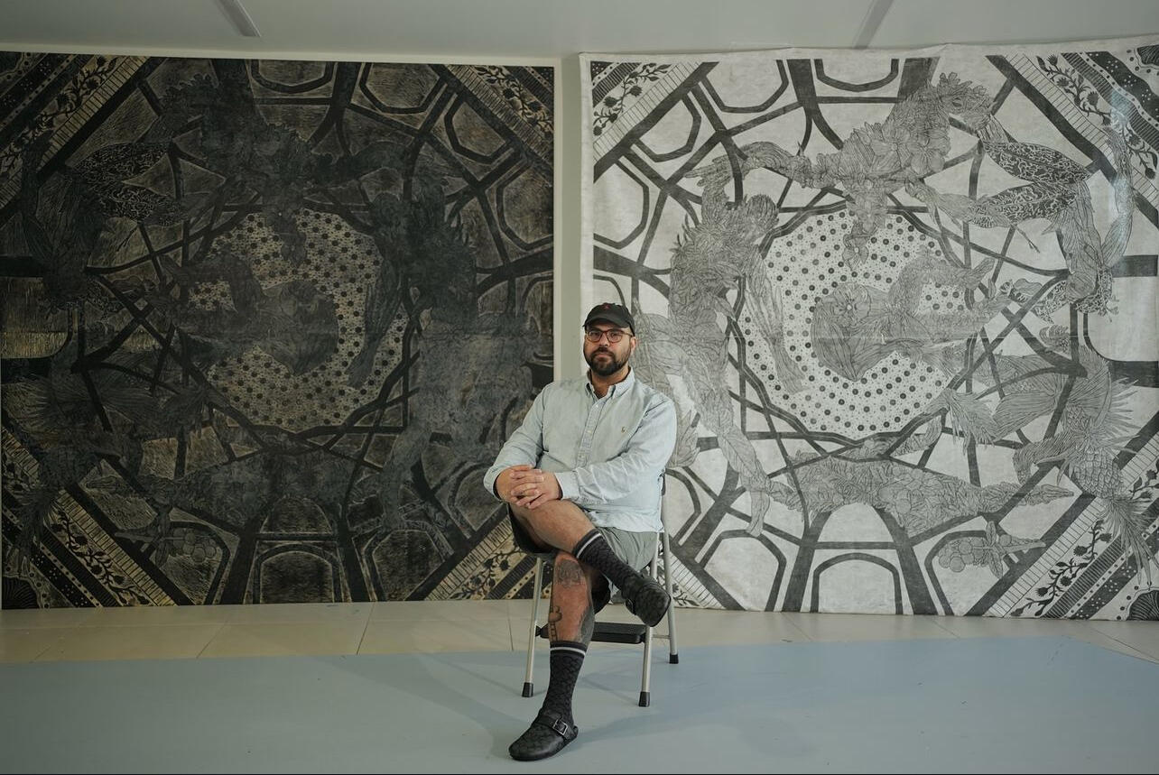 Jacoub Reyes is an multidisciplinary artist based in Central and South Florida, primarily working in printmaking and large-scale installation. His work utilizes experimental techniques to unravel his complex mixed-cultural heritage to build an imagined future based on belonging and resistance.He has had exhibitions and interactive public performances at the Asian Art Museum, The Crisp-Ellert Art Museum, Frontera Galeria Urbana- Guadalajara, Museum of Latin American Art, Highpoint Center for Printmaking, International Print Center New York, The Mennello Museum of American Art, and Aqua Art Miami, among others. Reyes received awards and fellowships from the Foundation for Contemporary Arts Emergency Grant, South Florida Cultural Consortium Grant, 4Culture Grant, Broward County's Artist Innovation Grant, The Puffin Foundation, Allies in Arts Grant, Immerse Artist Grant, and Awesome Grant. Notable residencies include MAC en el Barrio Residency at Hunter College, NYC (2023), The University of California-San Francisco's Library Artist in Residence (2022-23), Alfred University's BIPOC Artist Residency (2022), and Ma's House BIPOC Artist Residency (2021). Reyes is the Artistic Director for the City of Boynton Beach's Quantum Eco-Park and President of the Florida Printmakers Society.Reyes received his BFA from the University of Central Florida in 2013, where he was awarded the J.R. Hopes Scholarship.