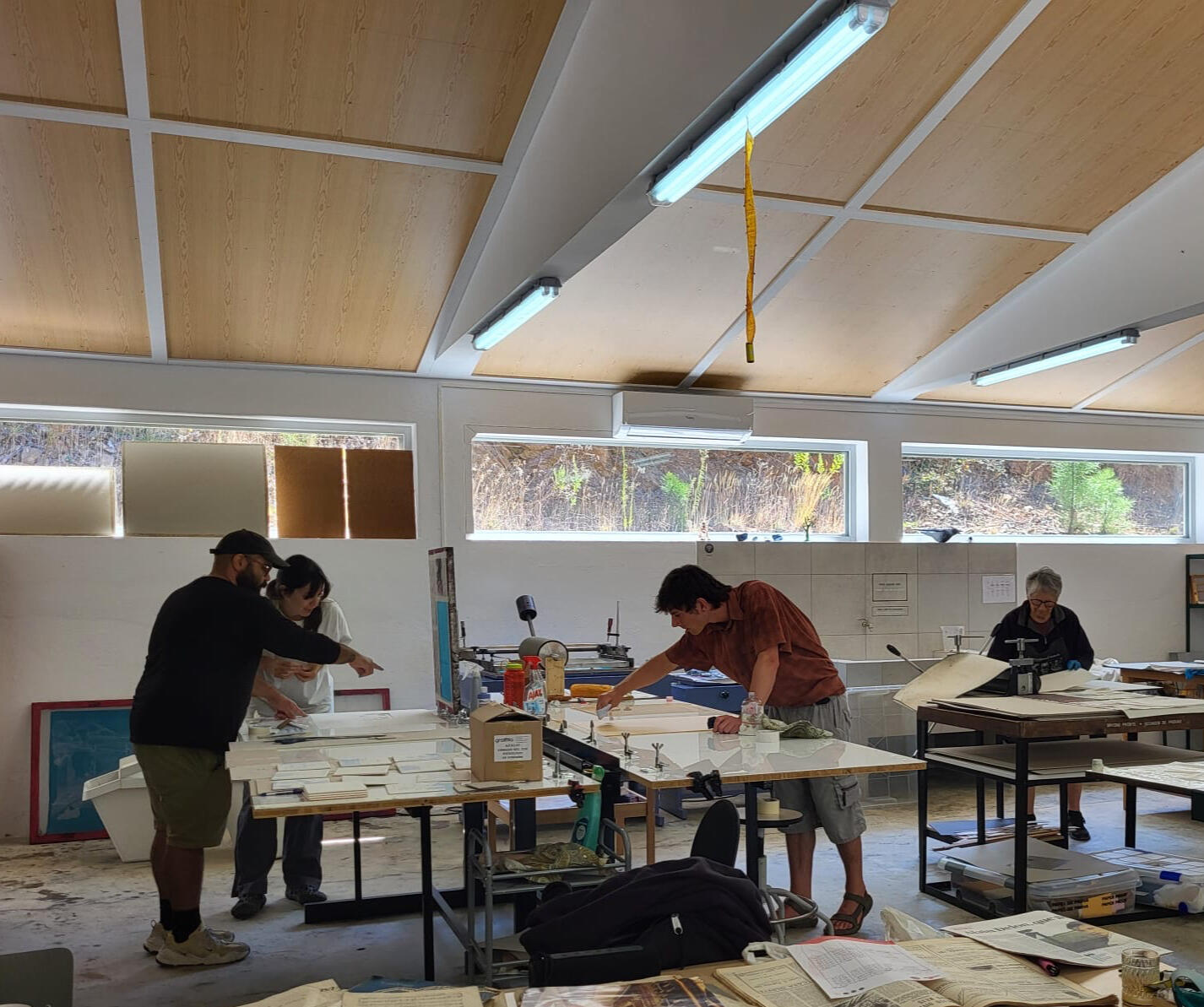 Public and private workshops are available through appointment only. Please contact us with the time, date, and number of participants for a quote. Available classes and services include large-scale woodblock carving and printing, screen printing, experimental printmaking, murals, critique, curation, consultation, and branding. Please visit our "Contact" page to reach out with any information detailing your request. Thank you!